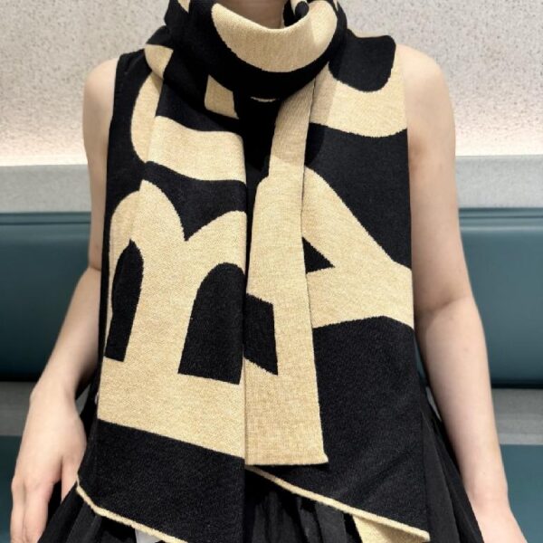巴宝莉(Burberry)【经典战马】针织围巾 黑白拼色