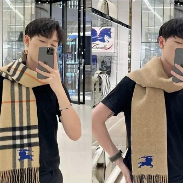 巴宝莉(Burberry) 爆款双面格子羊绒围巾 淡棕色