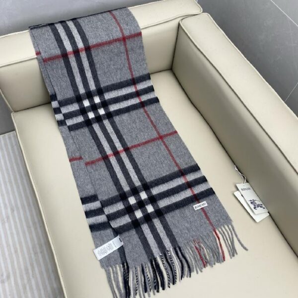 巴宝莉(Burberry)经典格子羊绒围巾 浅灰