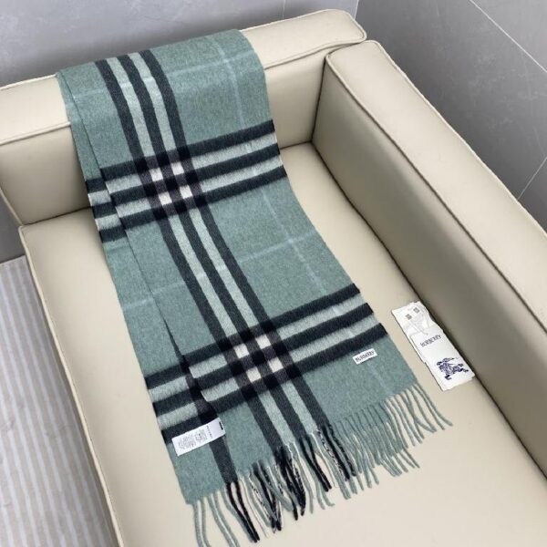 巴宝莉(Burberry)经典格子羊绒围巾 浅灰绿