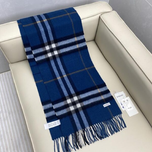 巴宝莉(Burberry)经典格子羊绒围巾 深蓝色