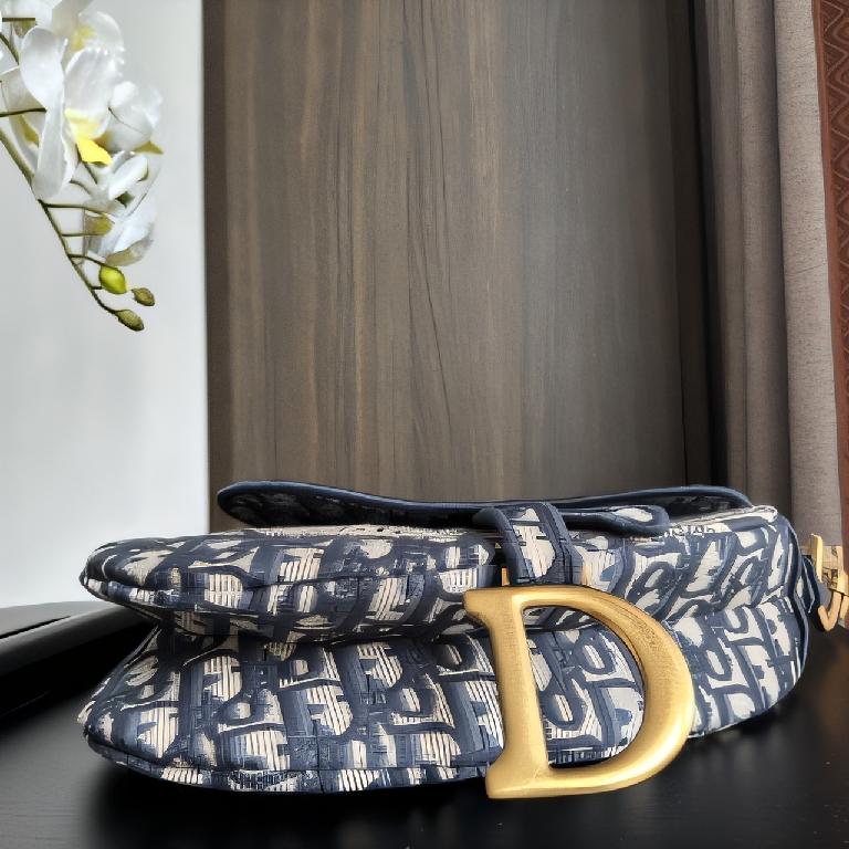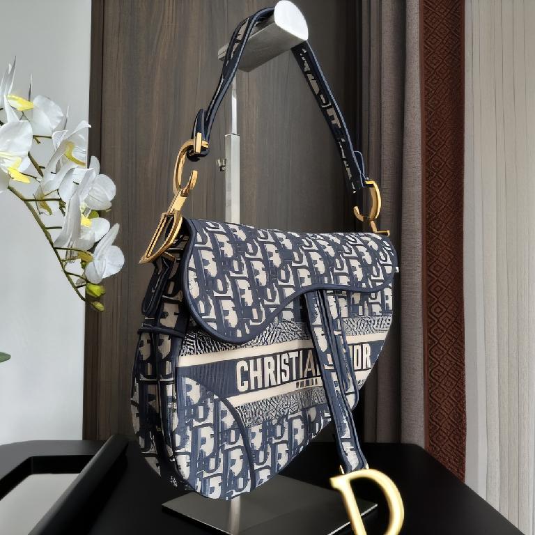 克里斯汀・迪奥(Christian Dior)Saddle 系列深蓝色 Oblique 提花帆布 D 形吊饰马鞍包