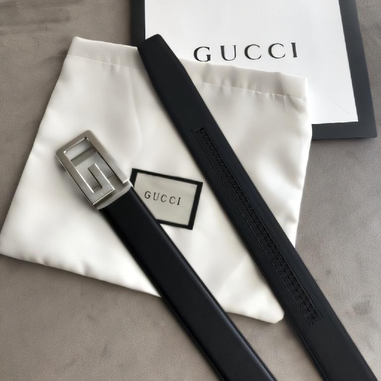 Be the first to review “古驰(Gucci)黑色小牛皮银色双 G 扳扣男士腰带”