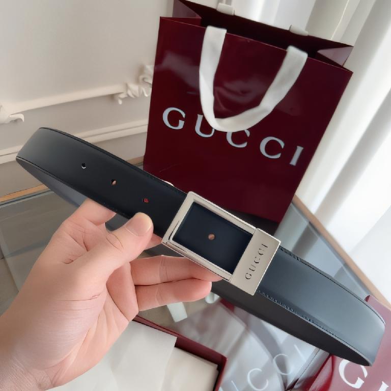 Be the first to review “古驰(Gucci)黑色小牛皮银色金属板扣男士腰带”
