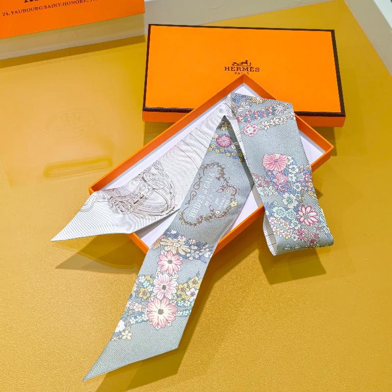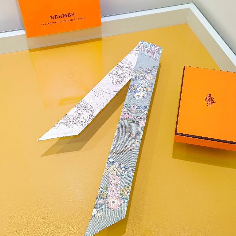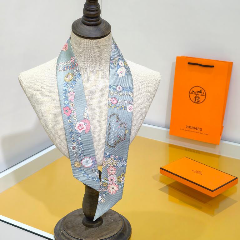 爱马仕【华丽的缰辔花卉版】小丝巾 白灰撞色