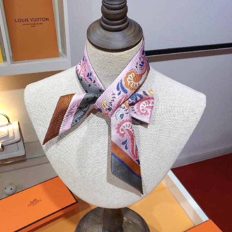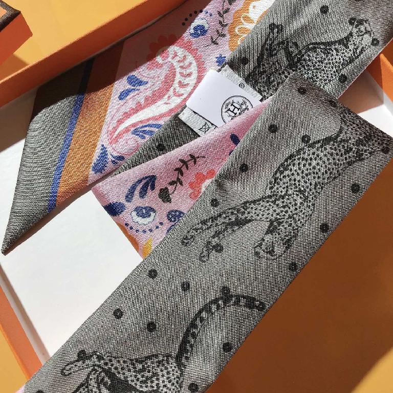 爱马仕【猎豹】Twilly小丝巾 灰粉撞色