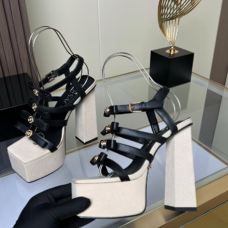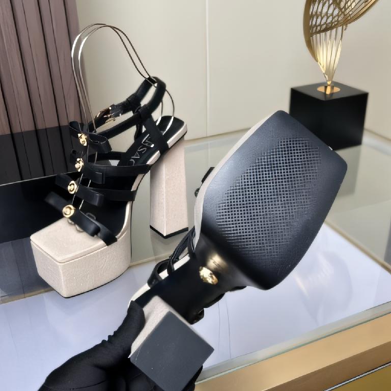 范思哲 Versace Medusa Aevitas 系列超高跟防水台凉鞋(黑色款)
