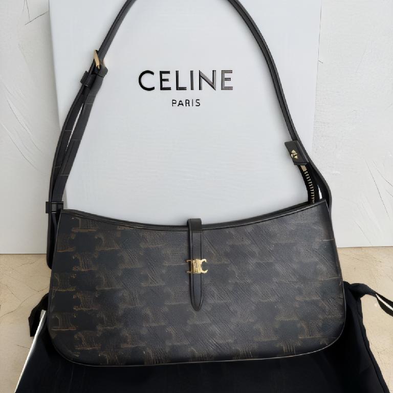 Be the first to review “赛琳(CELINE)Triomphe Curve 系列深棕色 Triomphe 提花帆布黑色小牛皮饰边 Triomphe 标识月牙单肩包”