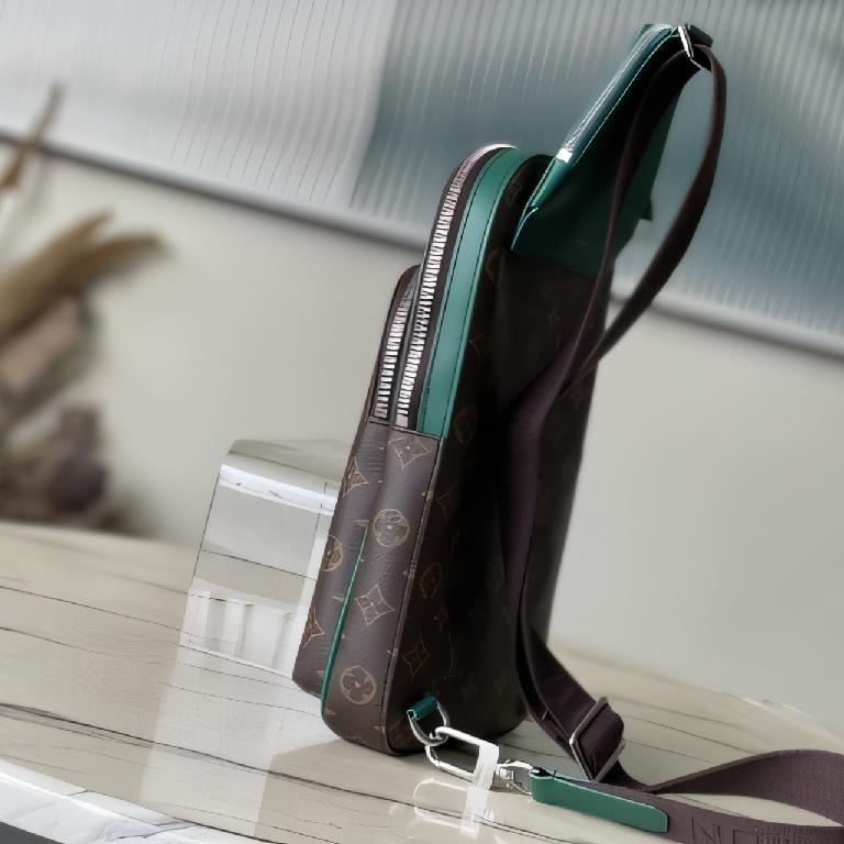 路易威登(Louis Vuitton)Avenue 老花拼绿色皮革胸包