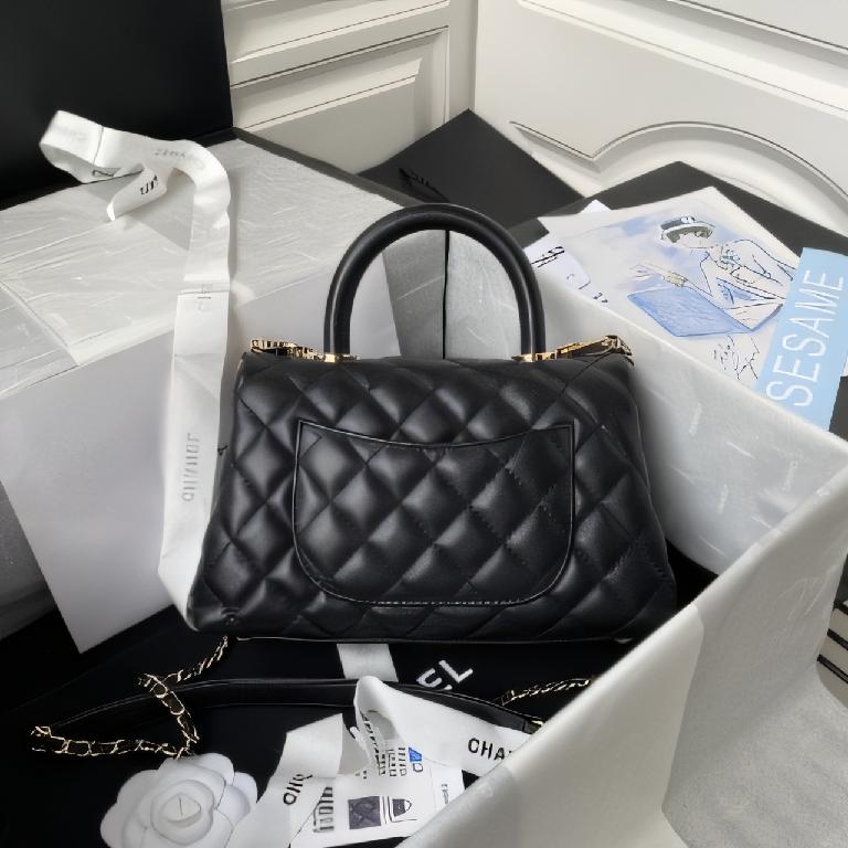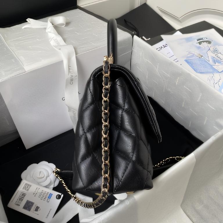 香奈儿(CHANEL)Coco Handle 系列黑色菱格绗缝小羊皮双 C 扣迷你手提斜挎包