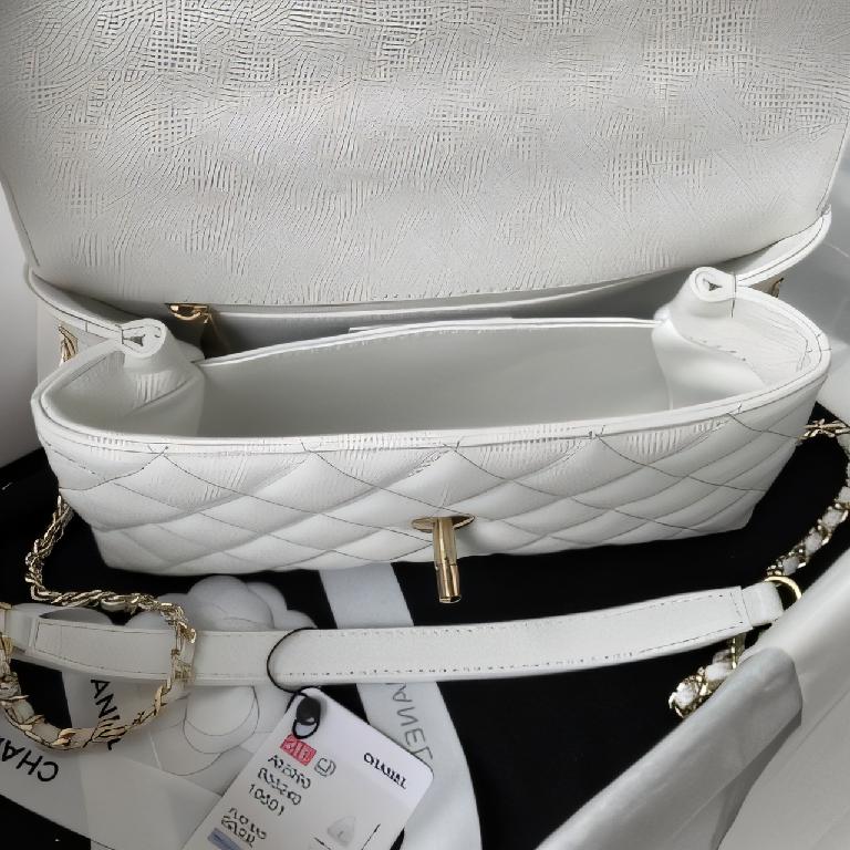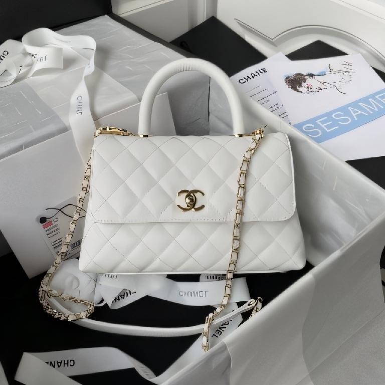 香奈儿(Chanel)Coco Handle Mini 米白色菱格纹荔枝皮手提斜挎包 中号