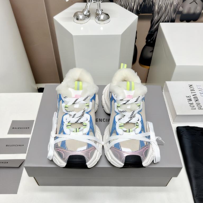 Balenciaga 3XL Shearling-Lined Extreme Lace Sneaker(巴黎世家 3XL 系列 “毛绒内衬极致鞋带” 款运动鞋)白灰蓝粉拼色