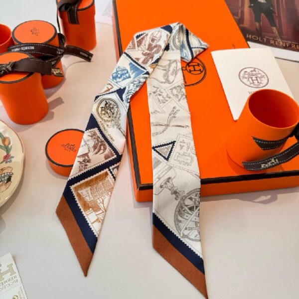 福宝集邮者爱马仕Twilly丝巾 蓝棕撞色