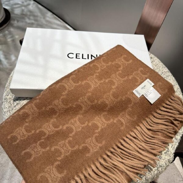 赛琳(CELINE)凯旋门散林老花羊绒围巾 浅栗色