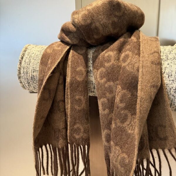 赛琳(CELINE)凯旋门散林老花羊绒围巾 太妃糖棕色