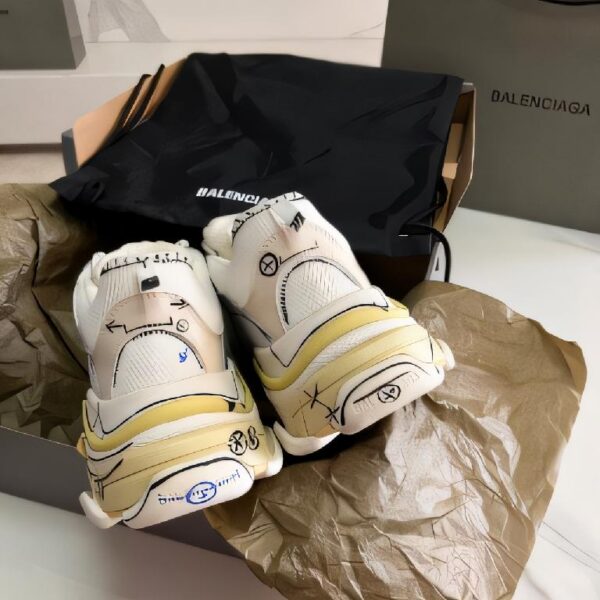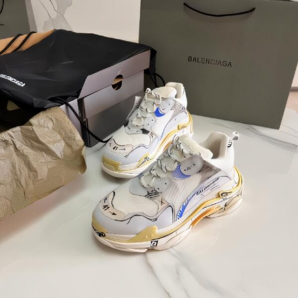 巴黎世家 Triple S 系列艺术印花厚底复古老爹鞋(白色基底款)