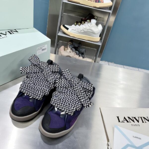 浪凡(LANVIN)Curb 系列蝴蝶结装饰格纹厚底休闲鞋 紫色(格纹拼接配色款)