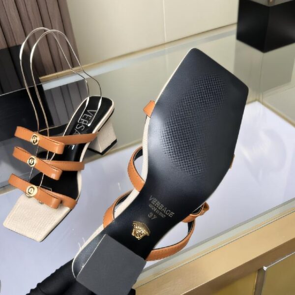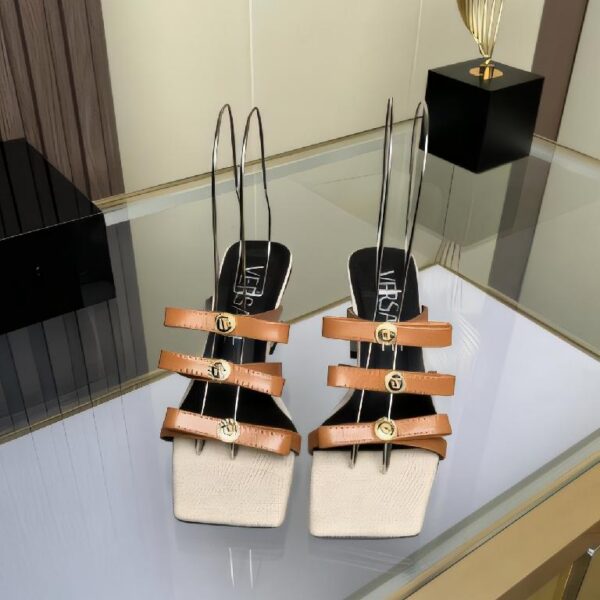 范思哲 La Medusa 系列卡其多带防水台方头高跟凉鞋