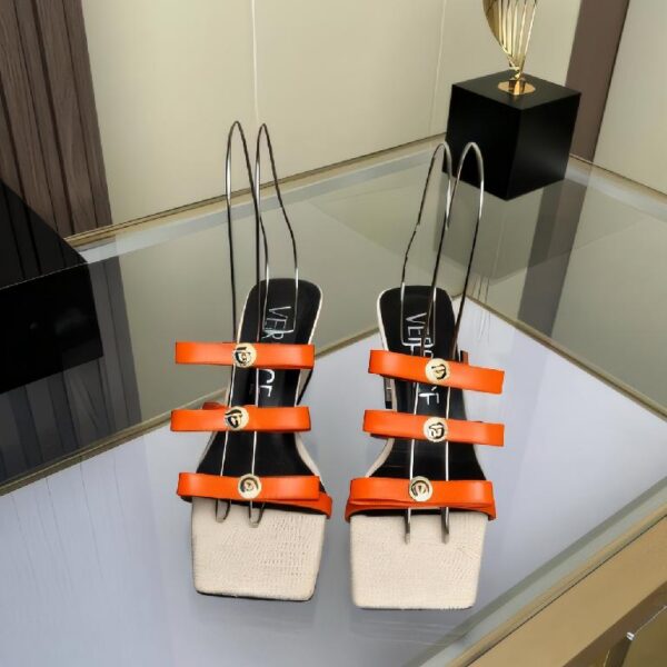 范思哲 La Medusa 系列橙色多带防水台方头高跟凉鞋