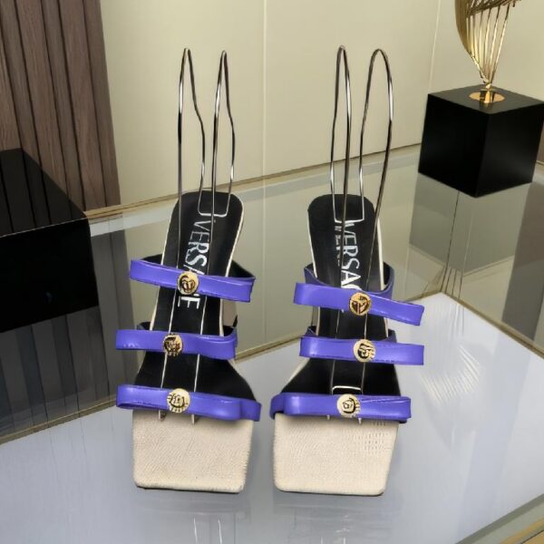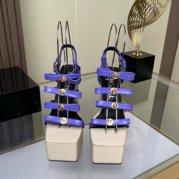 范思哲 La Medusa 系列紫色多带防水台方头高跟凉鞋