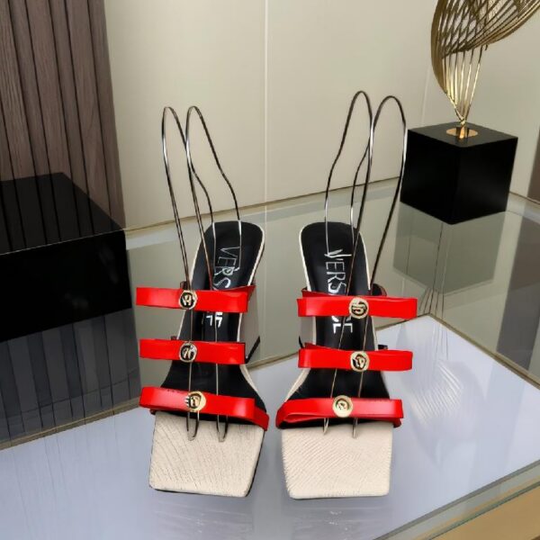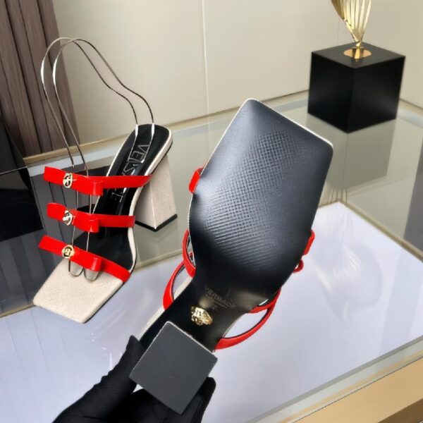 范思哲 La Medusa 系列红色多带防水台方头高跟凉鞋