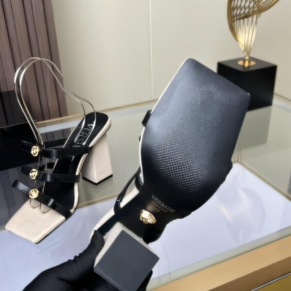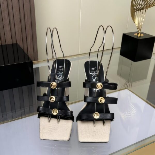 范思哲 La Medusa 系列黑色多带防水台方头高跟凉鞋