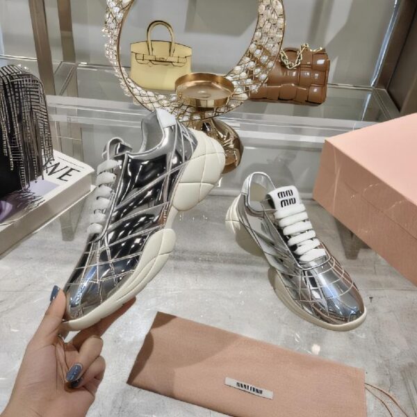 MiuMiu缪缪 新款系带休闲 运动鞋 银色