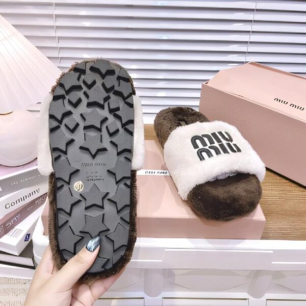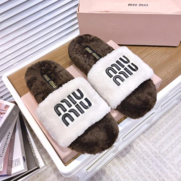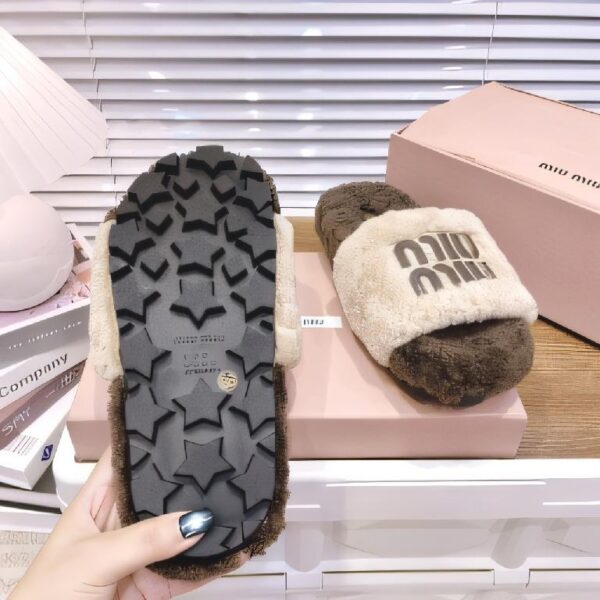 M家2024缪缪 秋冬新款字母羊毛拖鞋白棕配色