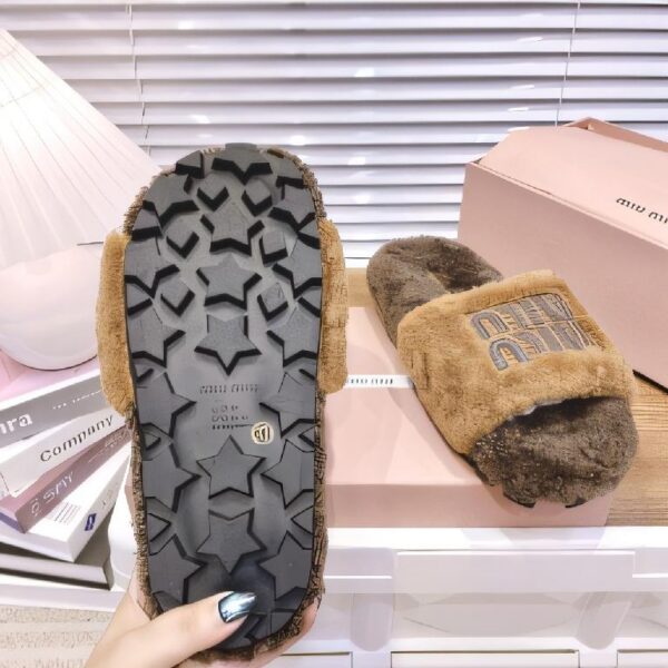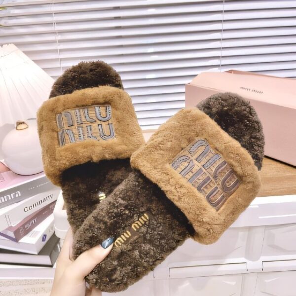 M家2024缪缪 秋冬新款字母羊毛拖鞋棕卡其配色