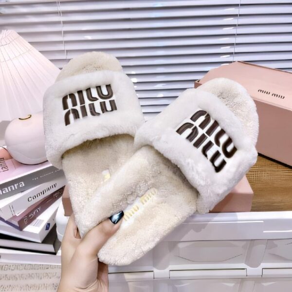 M家2024缪缪 秋冬新款字母羊毛拖鞋白色
