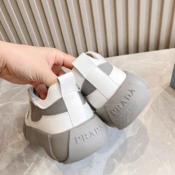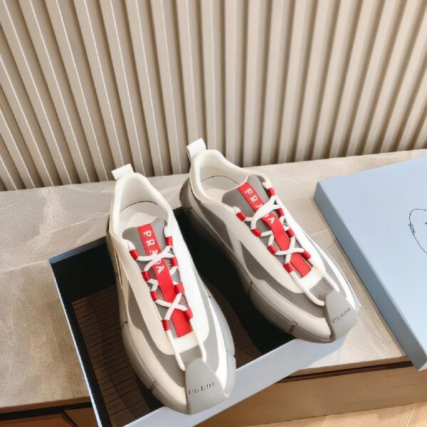 PRADA普拉达男士系带皮革休闲运动鞋灰红配色