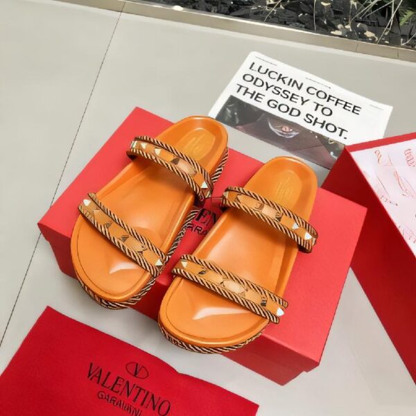 Valentino Garavani Rockstud Platform Mule Sandals 橙色皮革铆钉厚底穆勒拖鞋