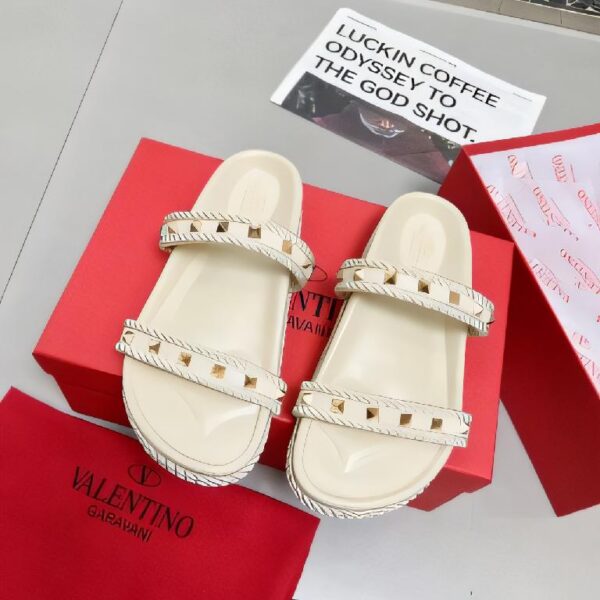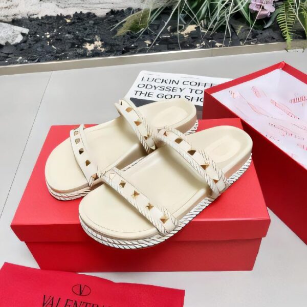 Valentino Garavani Rockstud Platform Mule Sandals 白色皮革铆钉厚底穆勒拖鞋