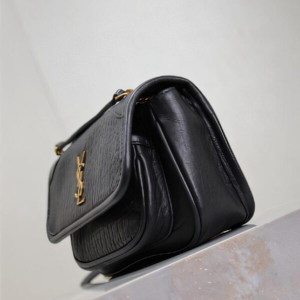 Saint Laurent Niki Baby 黑色裂纹皮革金扣链条单肩包