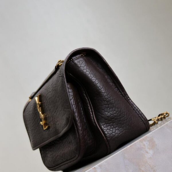 Saint Laurent Niki Small 深棕色裂纹皮革金扣链条单肩包