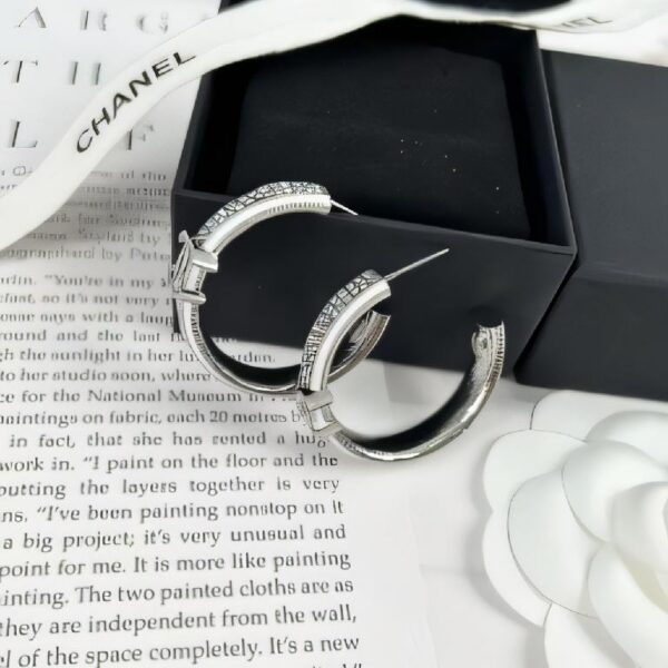 香奈儿(Chanel)Classic CC 系列银色镀金金属镶钻双 C 圈形耳环