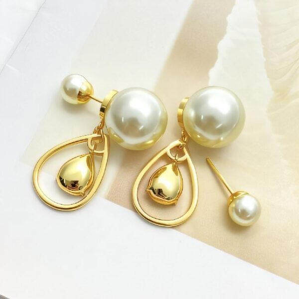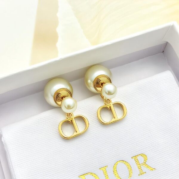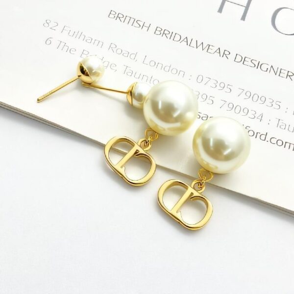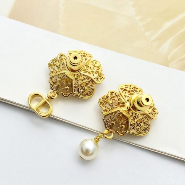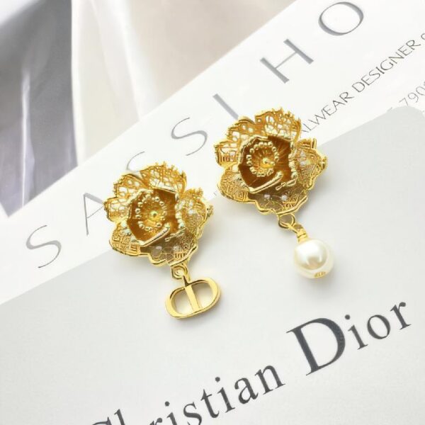 迪奥金色牡丹花不对称CD珍珠耳钉