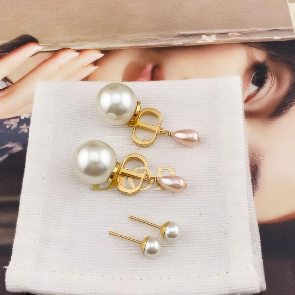 迪奥CD粉水滴珠双珠耳钉