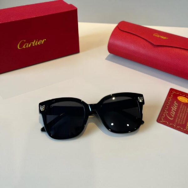 卡地亚(Cartier)Panthère de Cartier 系列黑色镜框金色猎豹装饰方形太阳镜