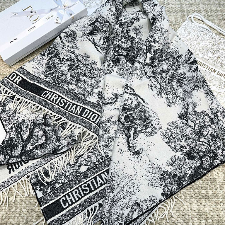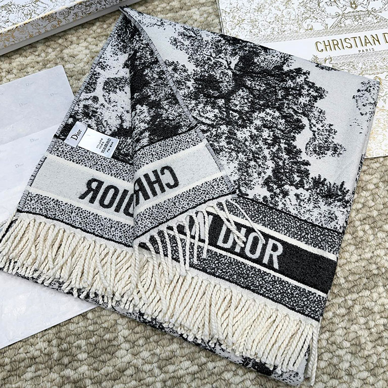 【动物】DIOR 迪奥CD提花logo印花大方巾围巾披肩毛毯三用