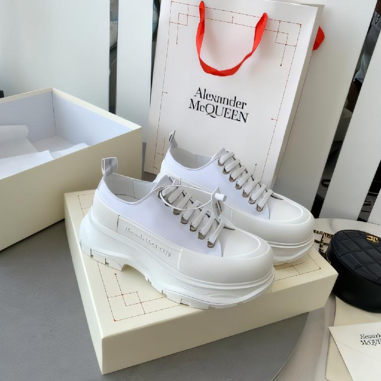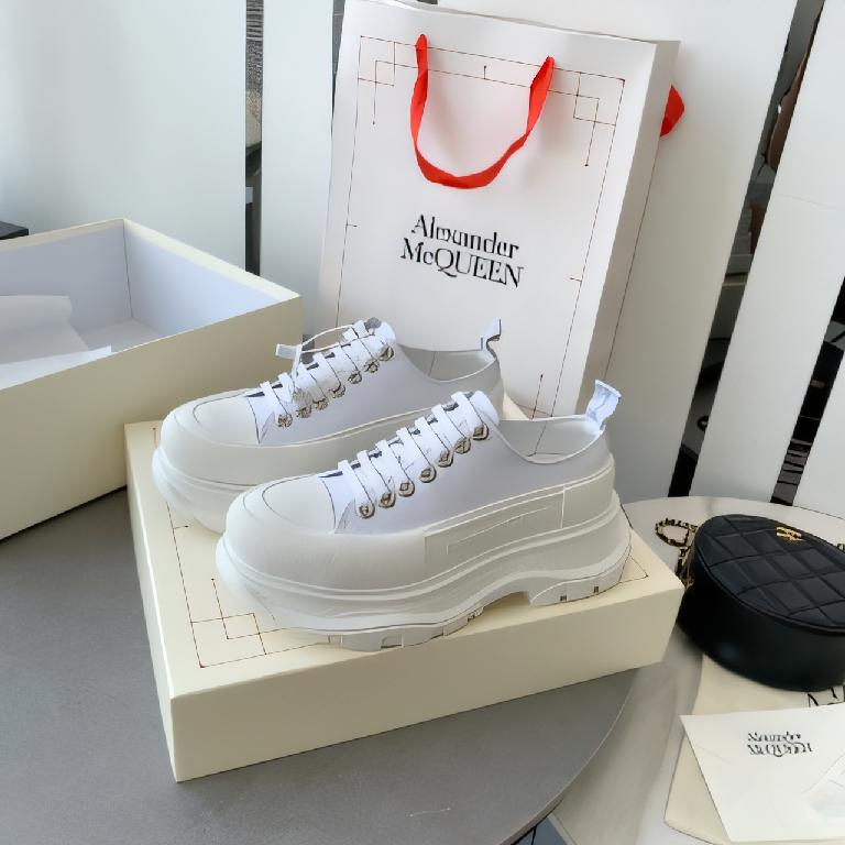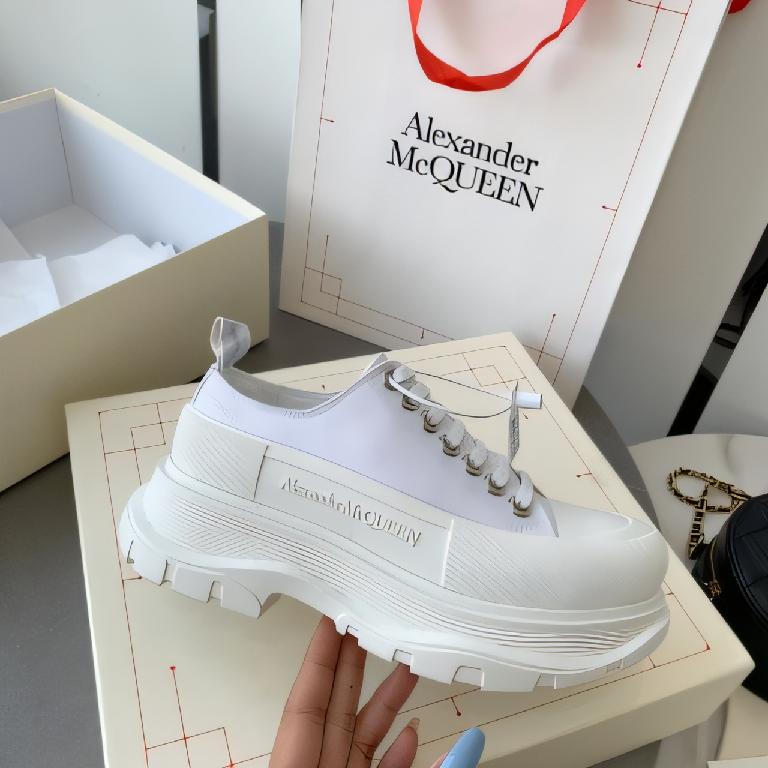 亚历山大・麦昆 Oversized 系列厚底休闲小白鞋(纯白色款)
