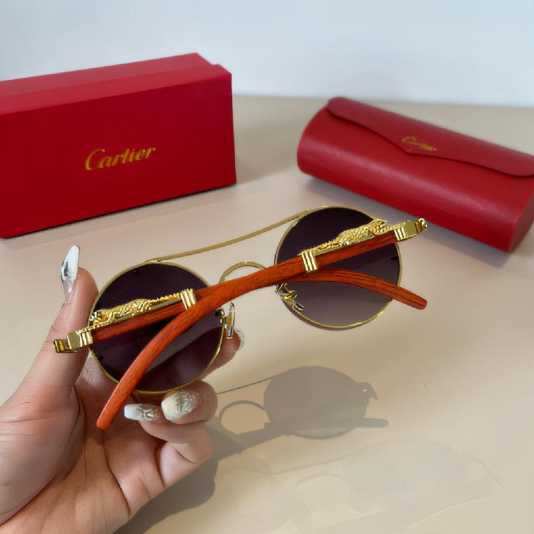 卡地亚(Cartier)猎豹装饰系列镀金金属圆形半框橙腿太阳镜
