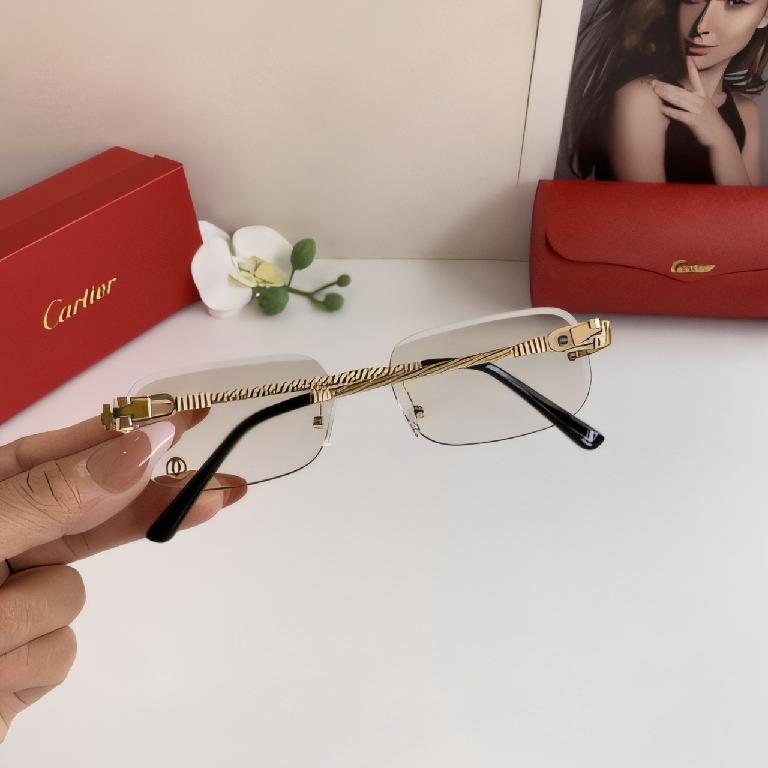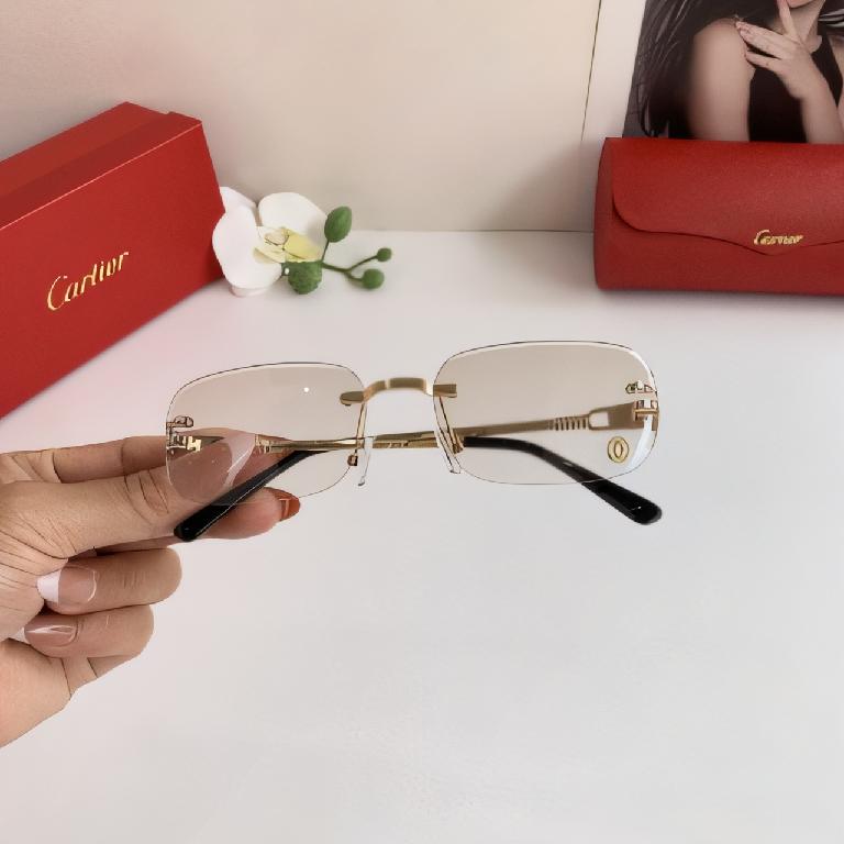 卡地亚(Cartier)C de Cartier 系列无框金属太阳镜 浅黄色渐变镜片
