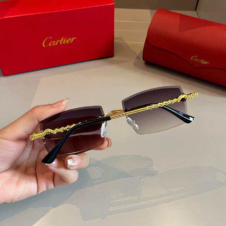 卡地亚(Cartier)Panthère 系列无框金色链条装饰渐变镜片太阳镜