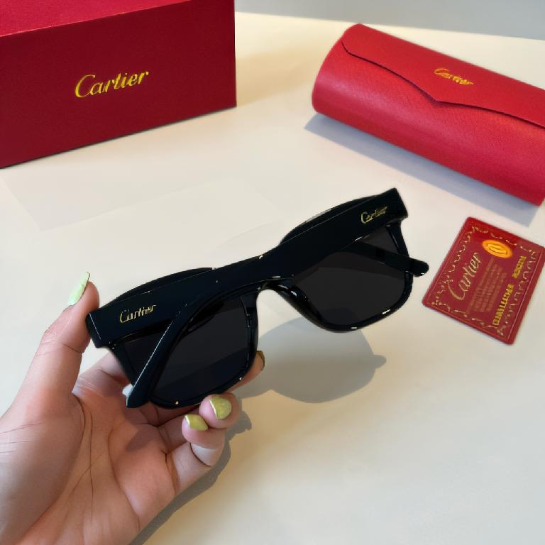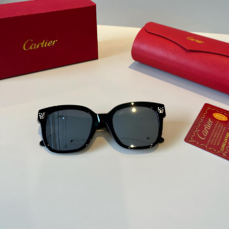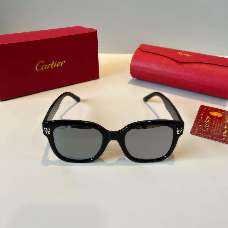 卡地亚(Cartier)Panthère de Cartier 系列黑色镜框灰色镜片金色猎豹装饰方形太阳镜
