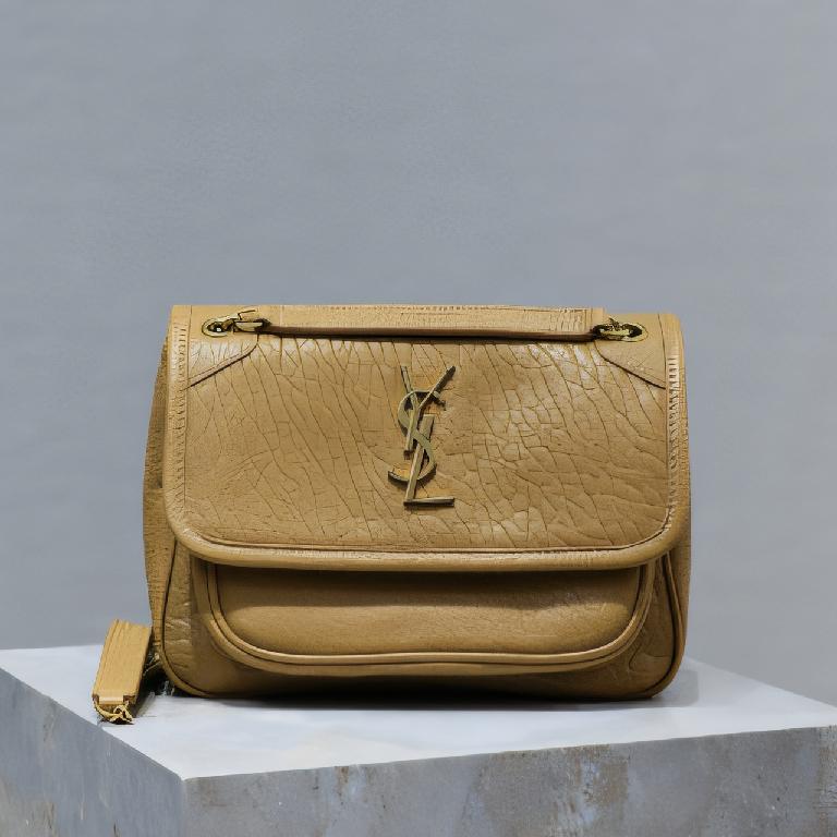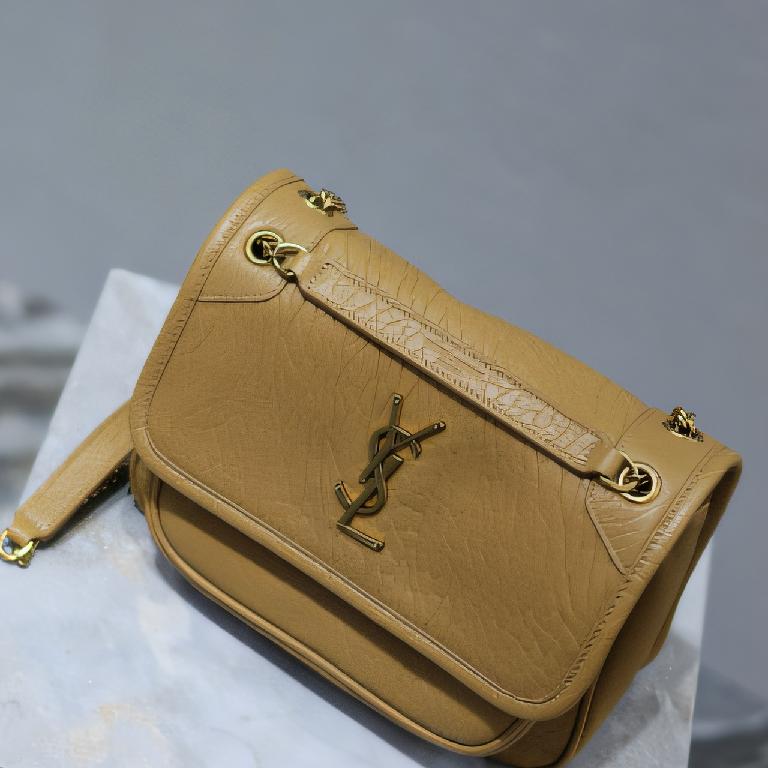 圣罗兰(Saint Laurent)Niki 中号黄棕色粒面小羊皮链条包
