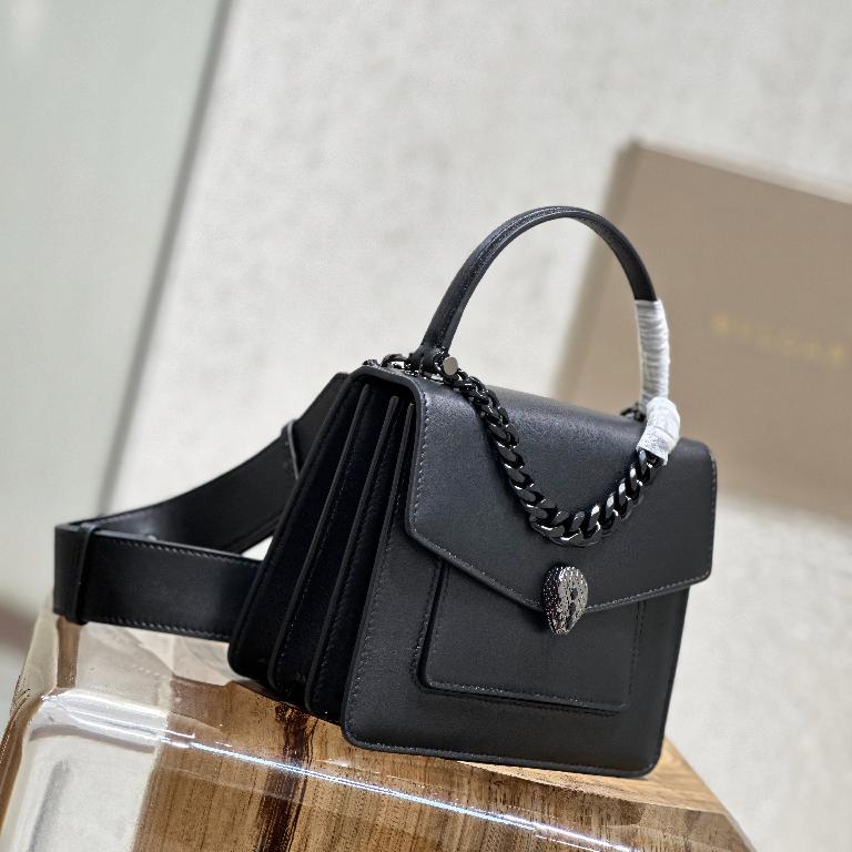 宝格丽 Serpenti East-West Maxi Chain 黑色都会小牛皮手提单肩包