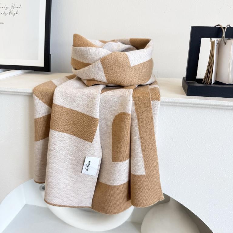 巴宝莉(Burberry)【经典战马】针织围巾 白杏拼色