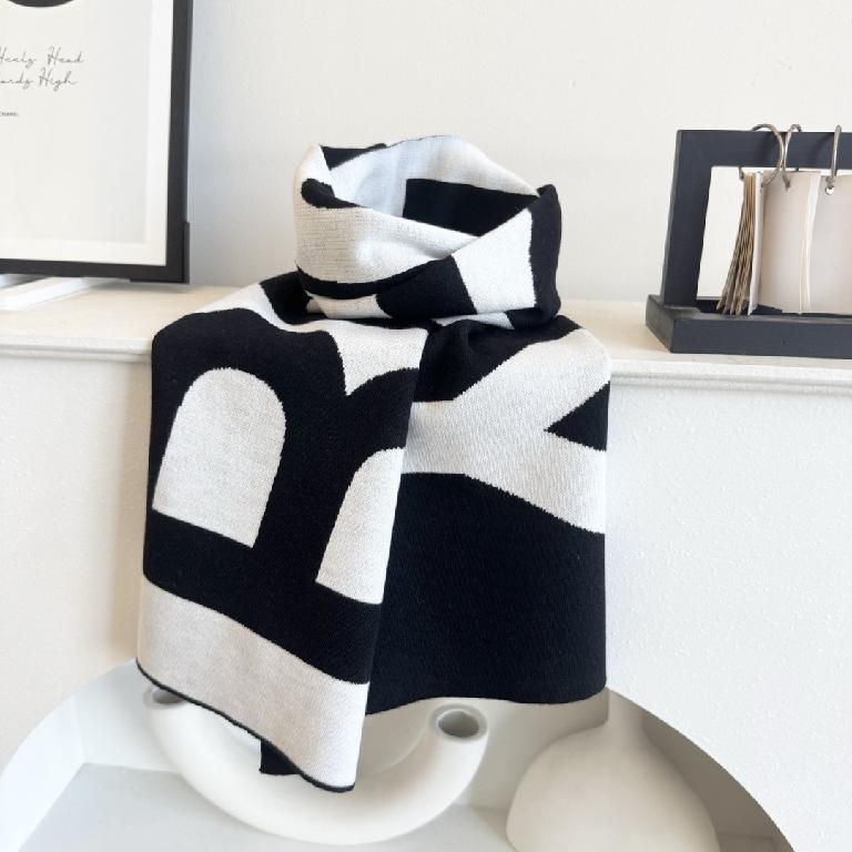 巴宝莉(Burberry)【经典战马】针织围巾 黑白拼色