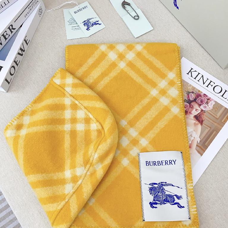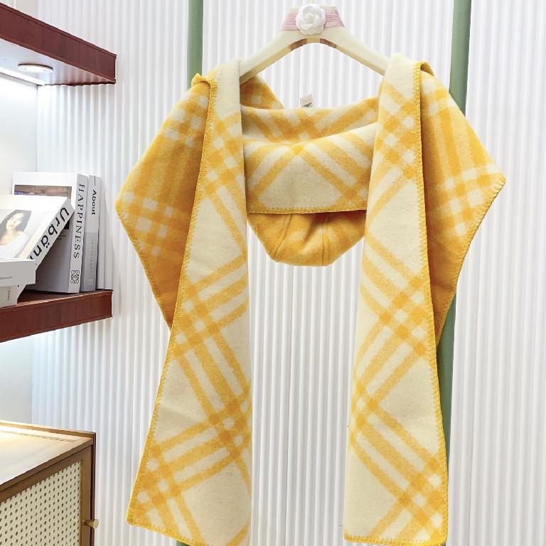 巴宝莉(Burberry)带帽款羊绒羊毛混纺围巾送专柜新款别针 黄色